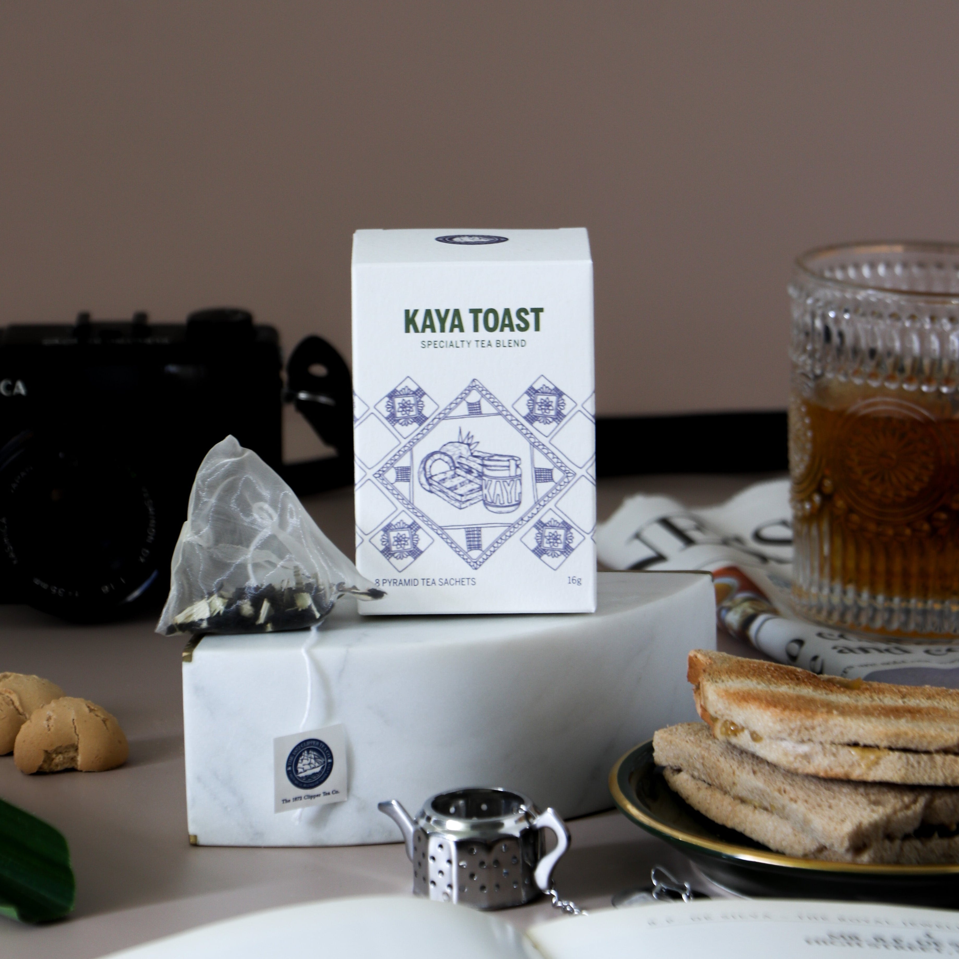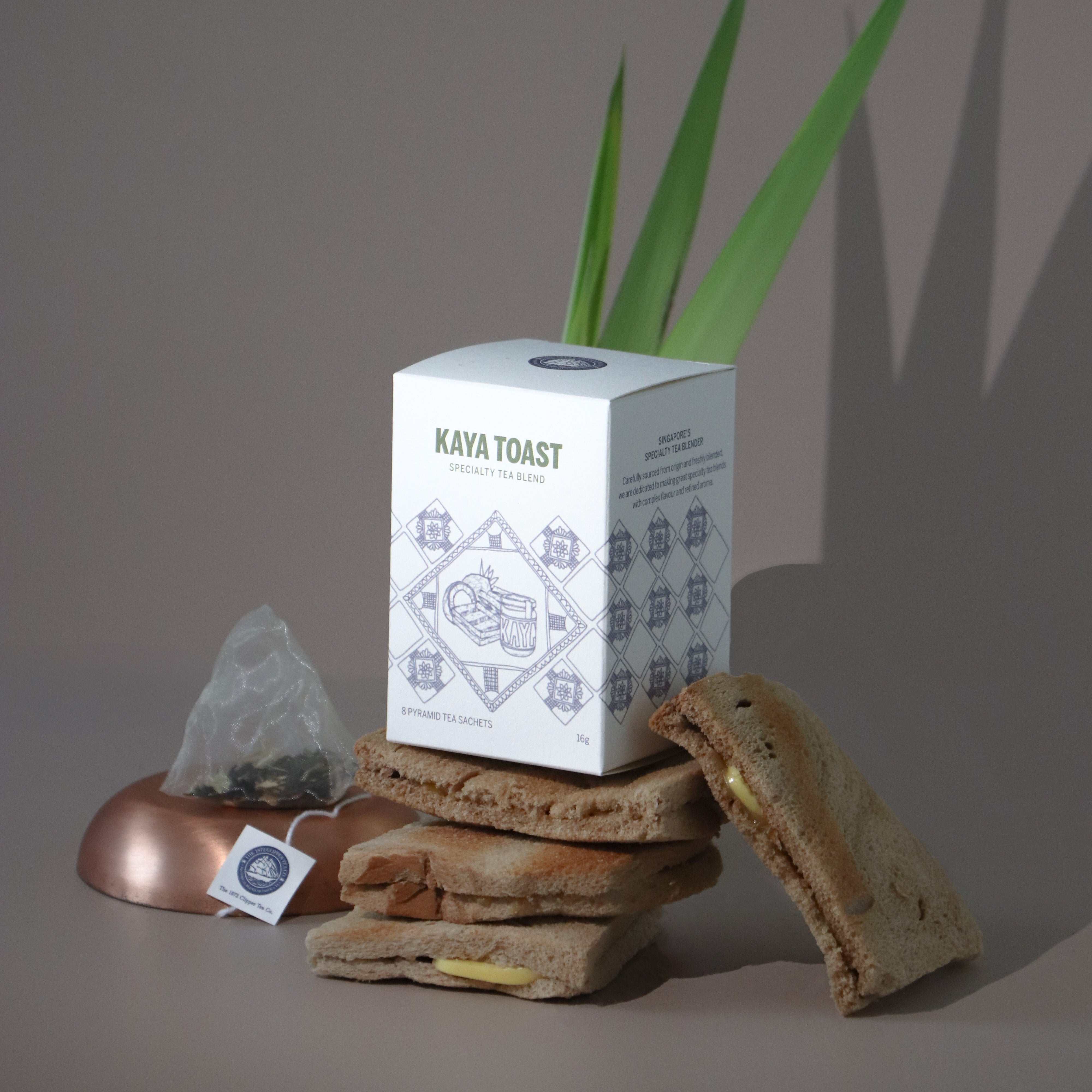A sip of tradition and comfort. Journey through the taste of Singapore with this velvety tea blend, capturing the essence of creamy kaya on bread and the tropical touch of coconut.