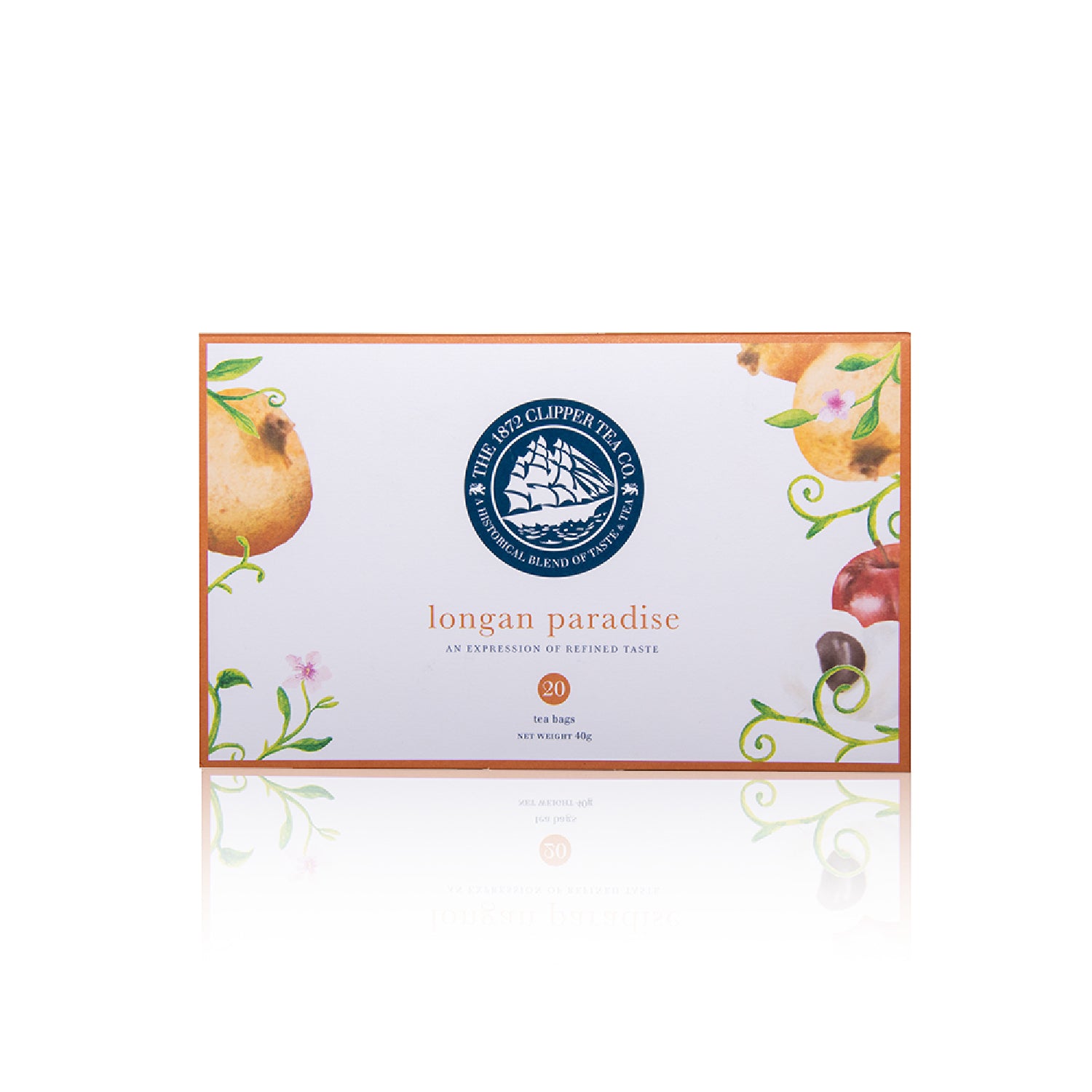 Longan Paradise combines Ceylon black and green tea with succulent apple, lychee, mangosteen, and guava for a sweet, lingering cup. Great Taste Awards winner 2019